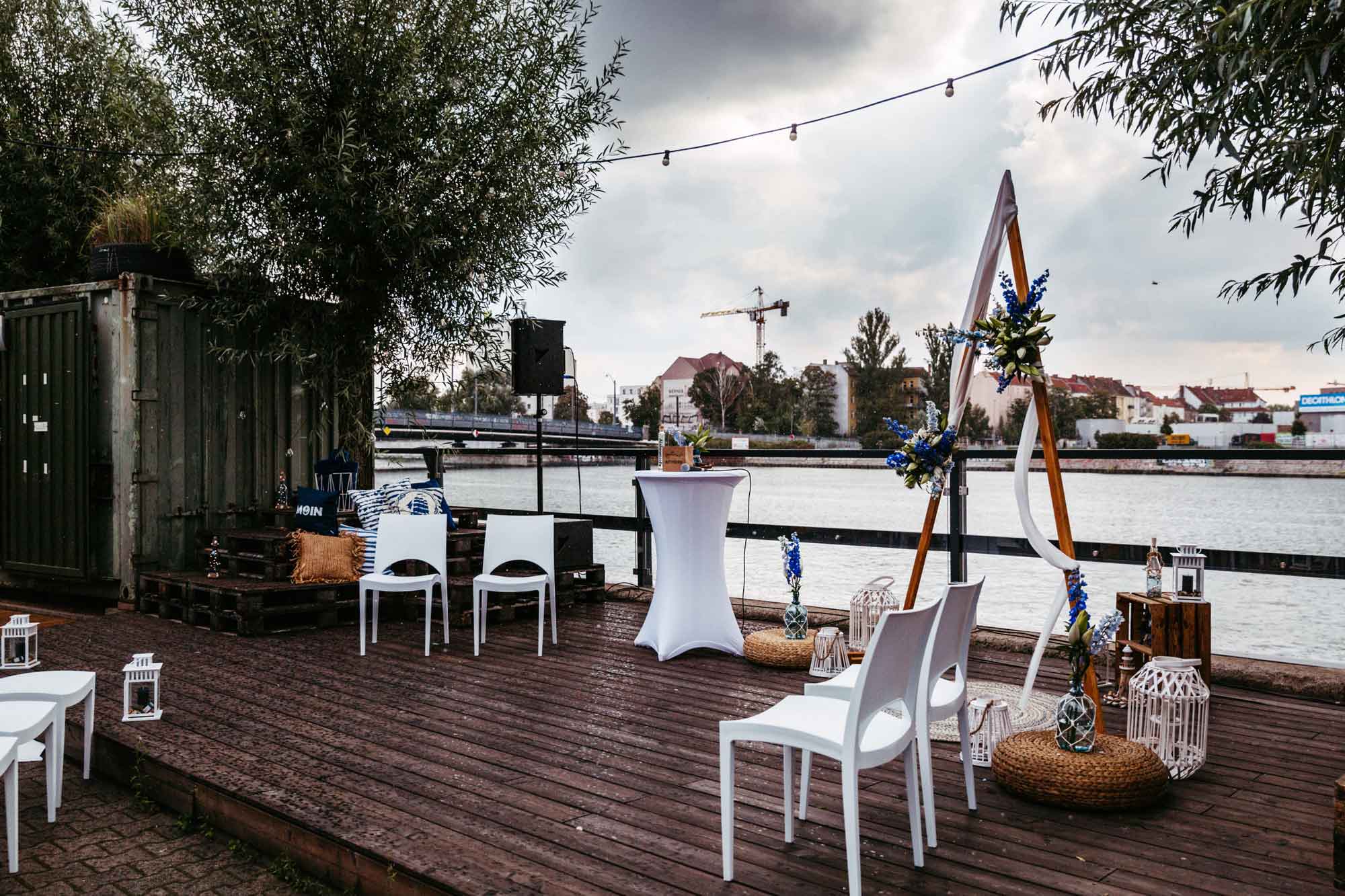 Mit dem Lighthouse, der Alva Lounge und dem Lichtermeer bietet die WHITE Spreelounge Brautpaaren 3 wunderschöne Hochzeitslocations an. Hier könnt ihr mit euren Gästen eure Traumhochzeit feiern. Eine freie Trauung und der anschließende Sektempfang ist z.B. im Lighthouse direkt mit Blick auf die Spree möglich.